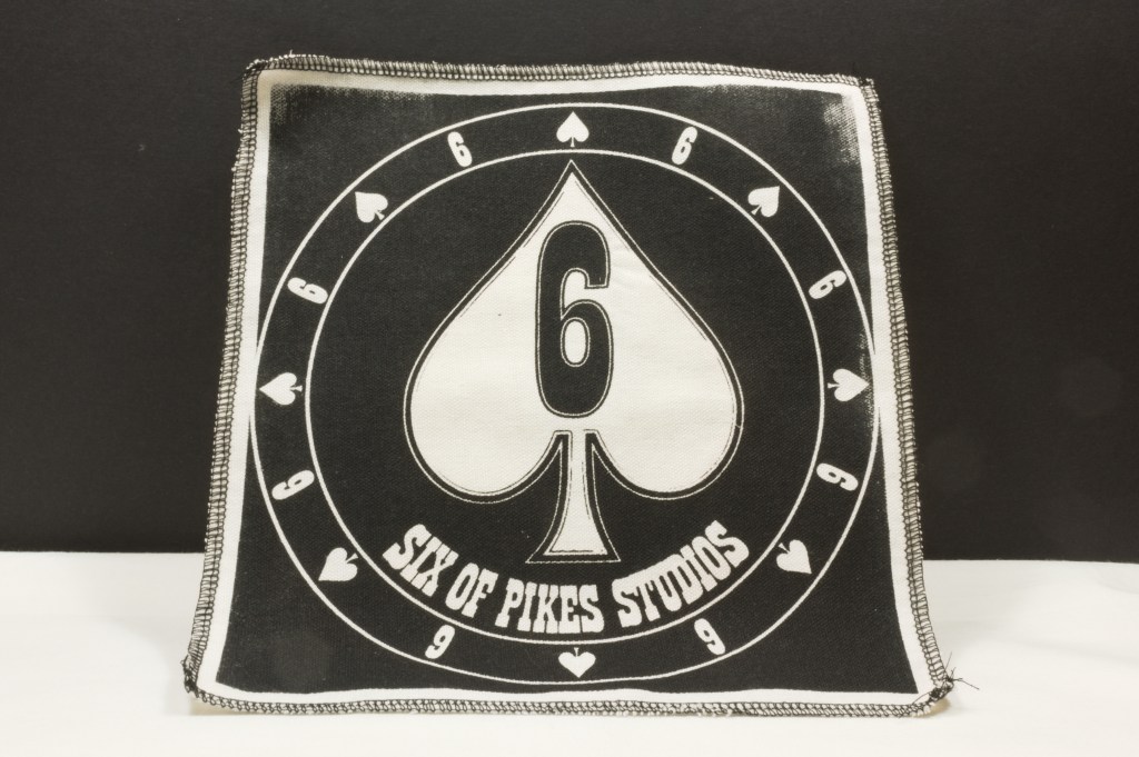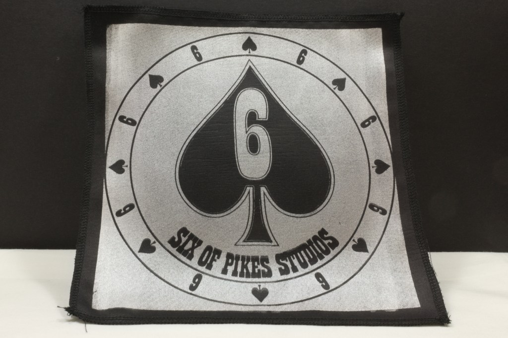 Custom silk screen “Six Of Pikes” logo gusseted tote bag