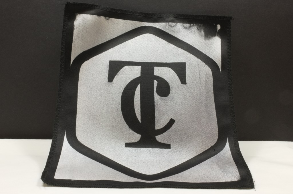 Custom silk screen patches, made from upcycled materials.