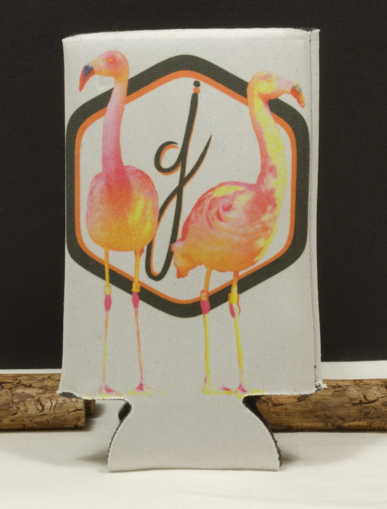 Custom heat pressed beer koozies, for 16 & 12 oz beverages